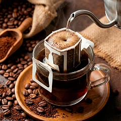 Бонус в каждой упаковке — 10 дрип-пакетов (фильтров для кофе). С их помощью вы можете готовить кофе методом пролива, получая прозрачный и ароматный напиток ресторанного уровня без использования фильтр-машин.