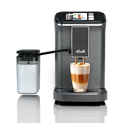 Комплектуется внешним резервуаром для молока и самостоятельно взбивает густую пену. В меню доступны 7 программ: эспрессо, двойной эспрессо, американо, капучино, латте, горячая вода и молочная пена.