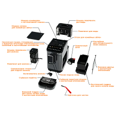 | Перечень программ | Эспрессо / Двойной эспрессо / Латте / Капучино / Американо / Горячая вода / Молочная пена / Очистка / Очистка кофемолки |