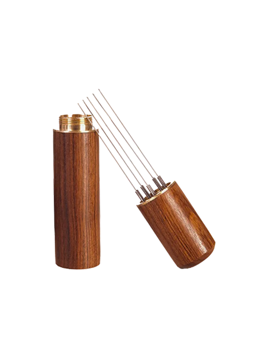 Игольчатый кофейный распределитель Alvatto с натуральной деревянной ручкой — незаменимый аксессуар для идеального приготовления эспрессо. Этот распределитель равномерно выравнивает молотый кофе в рожке, обеспечивая стабильность экстракции и исключая комки.