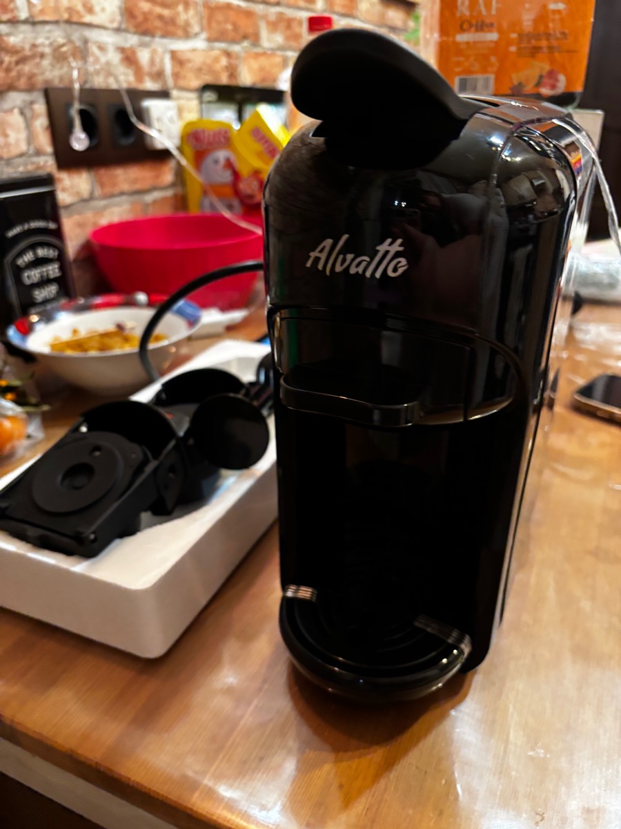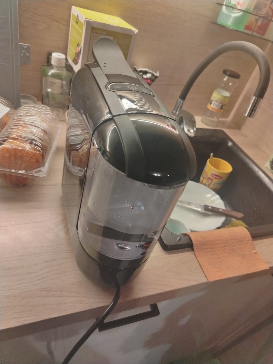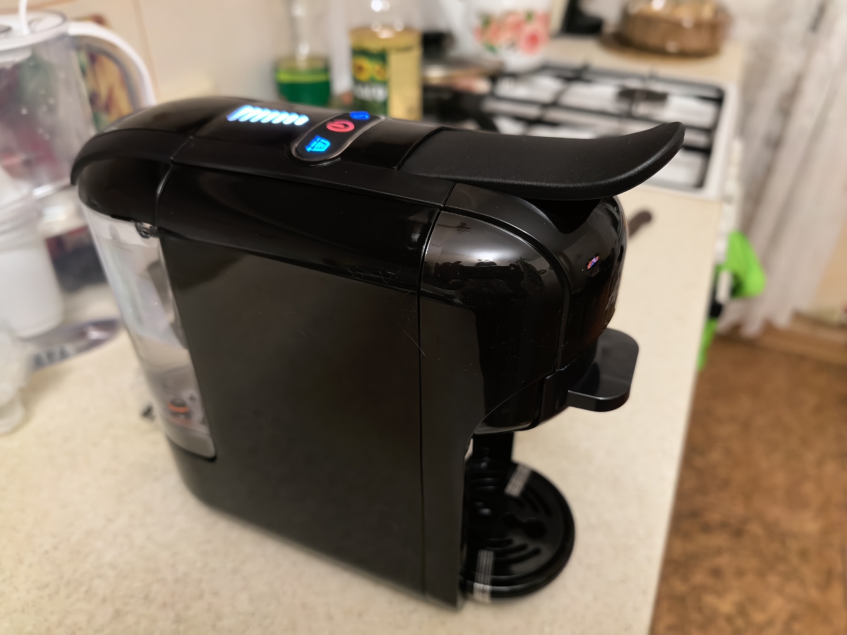 Всё необходимое уже в коробке: кофемашина, 3 сменных адаптера (для формата Неспрессо, Дольче Густо и молотого кофе/чалд), мерная ложка-темпер и специальная помпа-шприц для легкого первого запуска и прокачки системы. Съемный бак и поддон для капель легко моются.