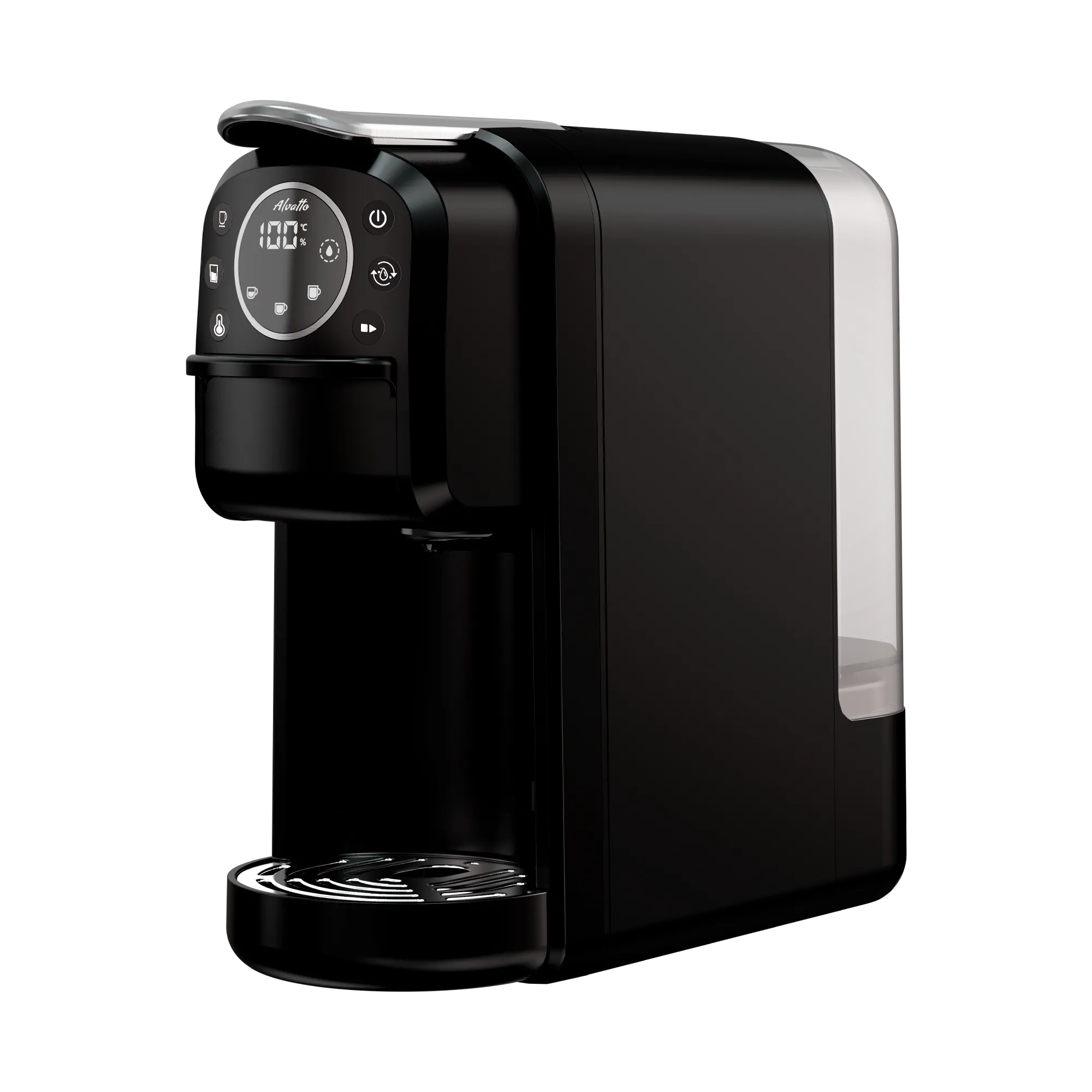 Alvatto Uno Pro — это универсальная кофемашина, которая позволяет готовить разнообразные напитки из разных видов кофе. Она поддерживает работу с капсулами форматов Nespresso Original и Dolce Gusto, а также с молотым кофе среднего помола для рожковых кофемашин и кофе в чалдах (E.S.E.44).